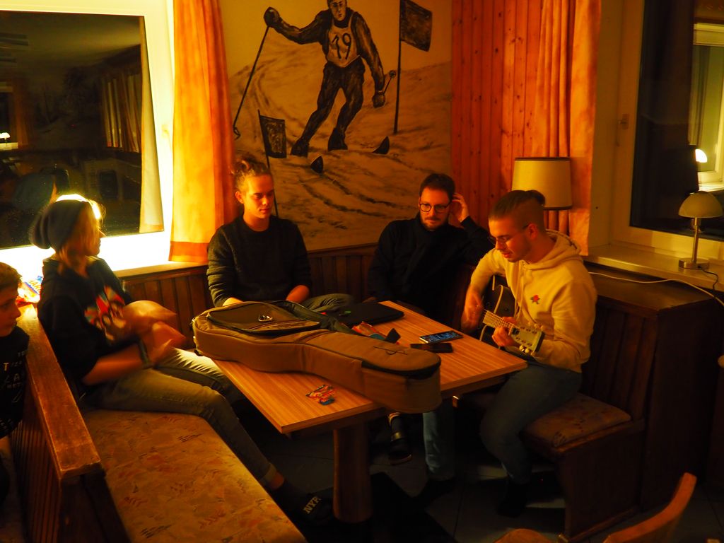 Gegen 18 Uhr erreichten wir unsere Skihütte und nach einer kurzen Besichtigung und der großzügigen Aufteilung von 5 Mehrbettzimmern auf 9 Leute,