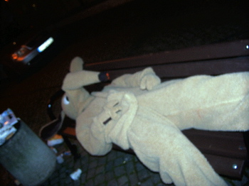 Kolpingjugendliche sitzen, die mit vollem Eifer Kuscheltiere flicken,