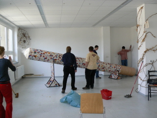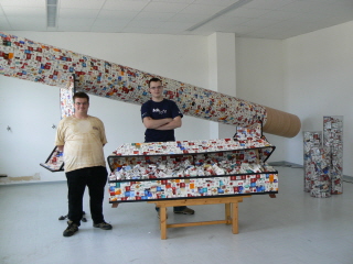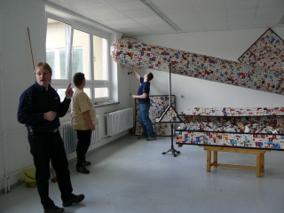 über mehrere Anläufe (Haus, Brücke,…) gelangten wir schließlich zu einer Riesenzigarette von sechs Metern Länge.